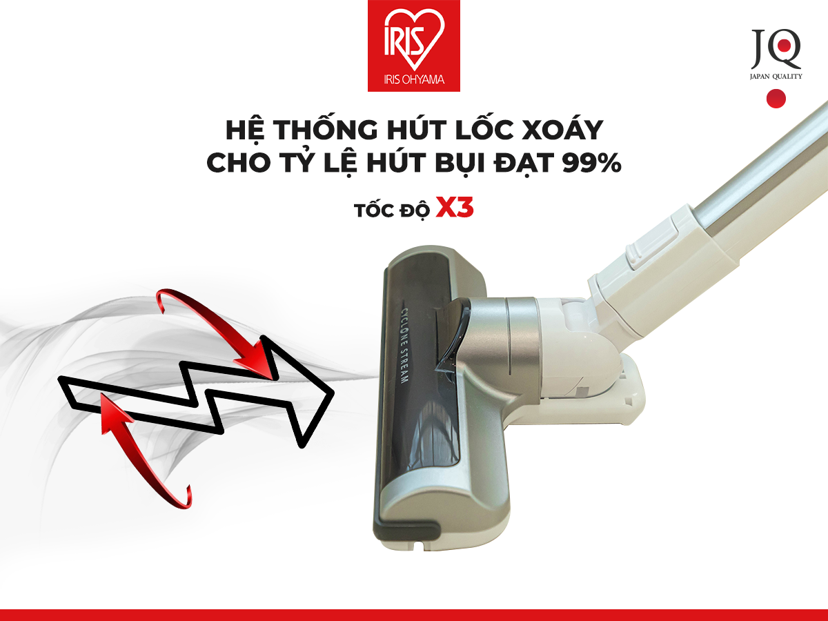 Với hệ thống hút lốc xoáy được Iris nâng cấp, giúp tốc độ hút của IC-SLDC8 nhân gấp 3 lần, tỷ lệ hút đạt 99%. Đảm bảo không bỏ sót bất kỳ chi tiết nào trong ngôi nhà của bạn.