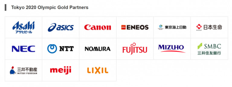 Danh sách đối tác hạng Vàng của Olympic Tokyo 2020 (Nguồn: Olympics)